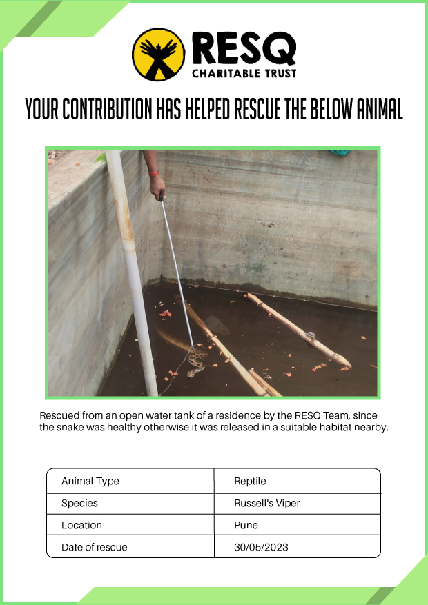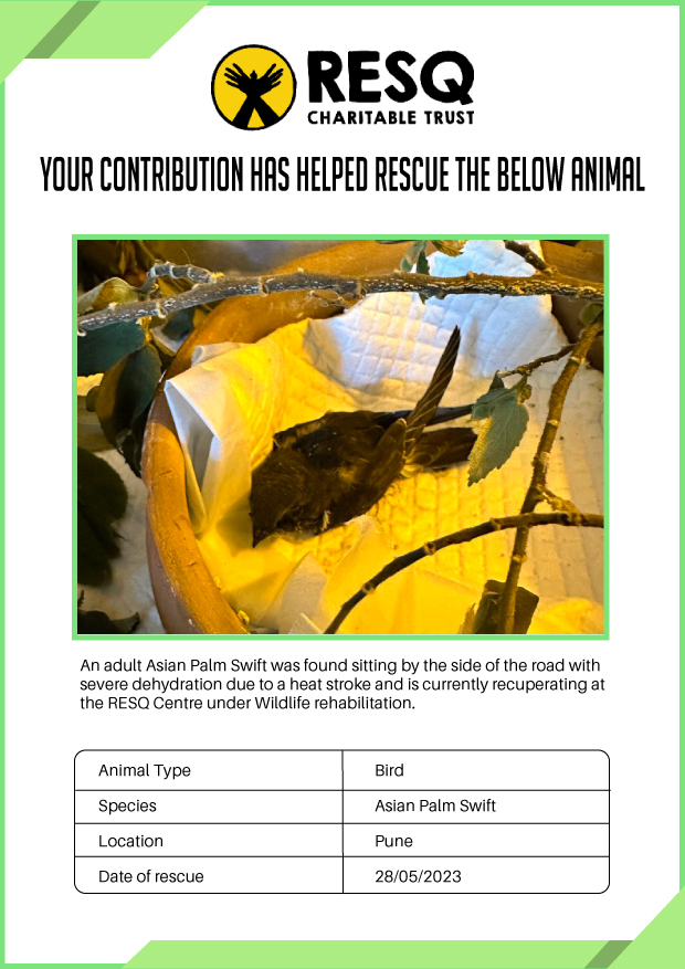 RESQ was founded in 2007 to provide emergency aid to animals in distress. Since then, the rescue and rehabilitation work of the organisation has provided aid to thousands of animals of over 200+ species, improved public health and safety outcomes, and actively worked on preventing human-animal conflict across multiple urban and rural ecosystems.