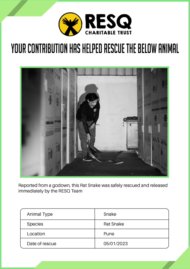 RESQ was founded in 2007 to provide emergency aid to animals in distress. Since then, the rescue and rehabilitation work of the organisation has provided aid to thousands of animals of over 200+ species, improved public health and safety outcomes, and actively worked on preventing human-animal conflict across multiple urban and rural ecosystems.
