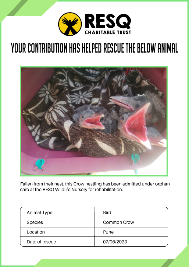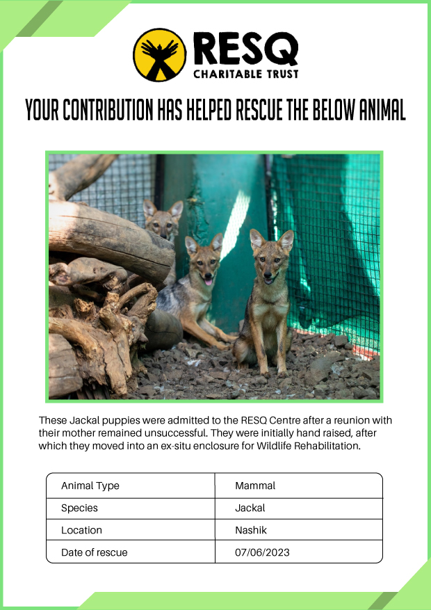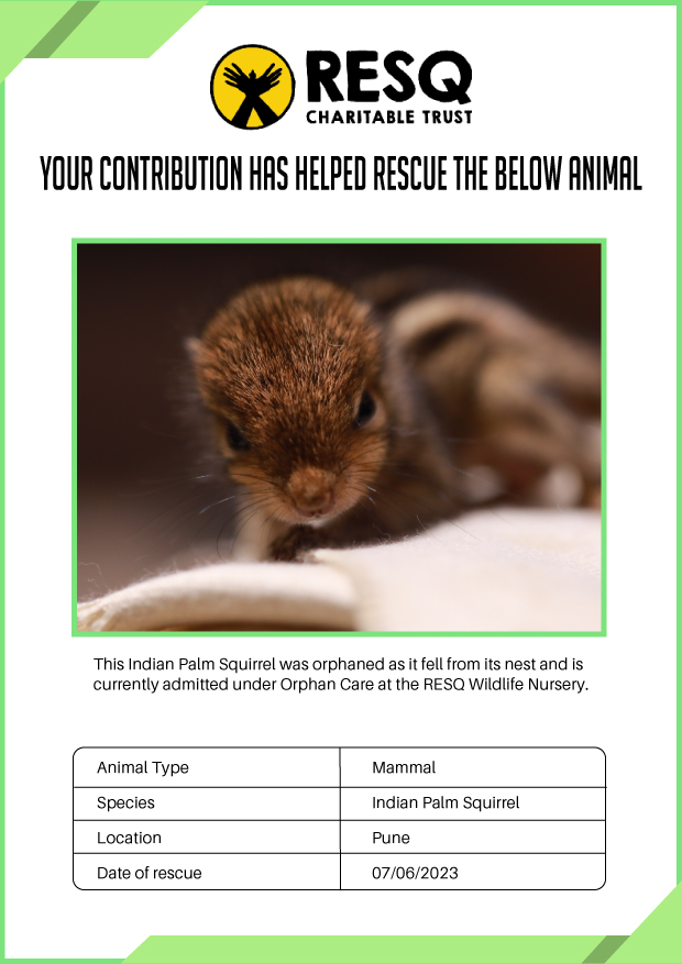 RESQ was founded in 2007 to provide emergency aid to animals in distress. Since then, the rescue and rehabilitation work of the organisation has provided aid to thousands of animals of over 200+ species, improved public health and safety outcomes, and actively worked on preventing human-animal conflict across multiple urban and rural ecosystems.