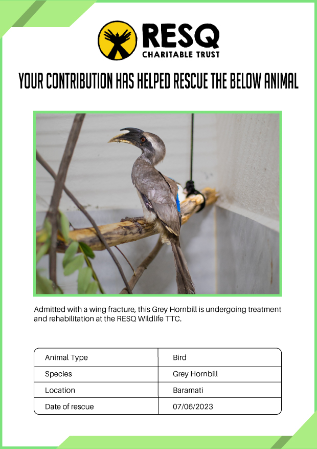 Maharashtra is home to a diverse population of wild animals, many of whom are key species identified to be globally declining. The Pune-based NGO - RESQ provides emergency aid to animals in distress. Thousands of wild animals come to RESQ annually who are either injured, sick, orphaned, or victims of wildlife trafficking and illegal captivity.
