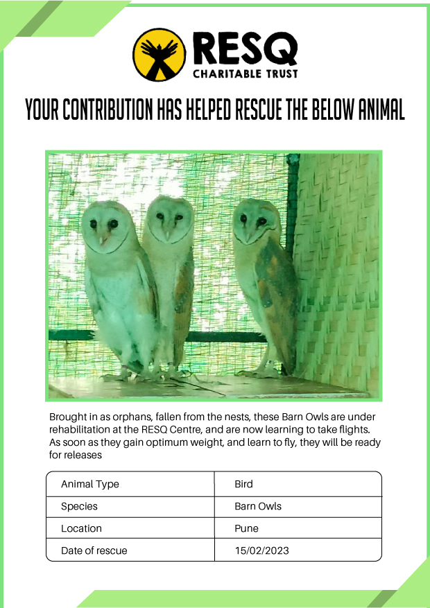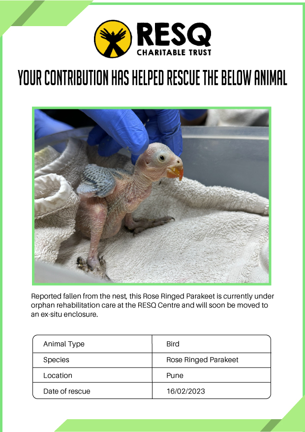 RESQ was founded in 2007 to provide emergency aid to animals in distress. Since then, the rescue and rehabilitation work of the organisation has provided aid to thousands of animals of over 200+ species, improved public health and safety outcomes, and actively worked on preventing human-animal conflict across multiple urban and rural ecosystems.