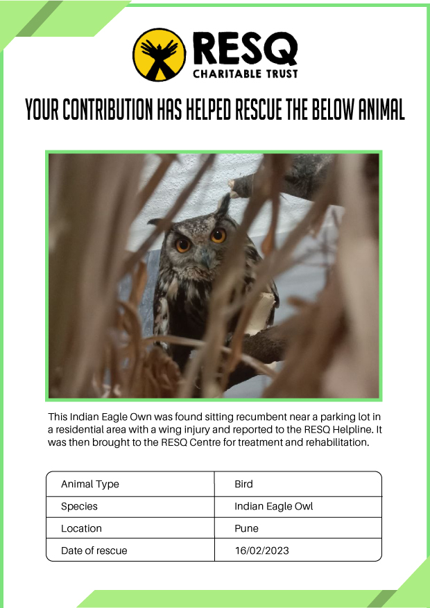 Maharashtra is home to a diverse population of wild animals, many of whom are key species identified to be globally declining. The Pune-based NGO - RESQ provides emergency aid to animals in distress. Thousands of wild animals come to RESQ annually who are either injured, sick, orphaned, or victims of wildlife trafficking and illegal captivity.