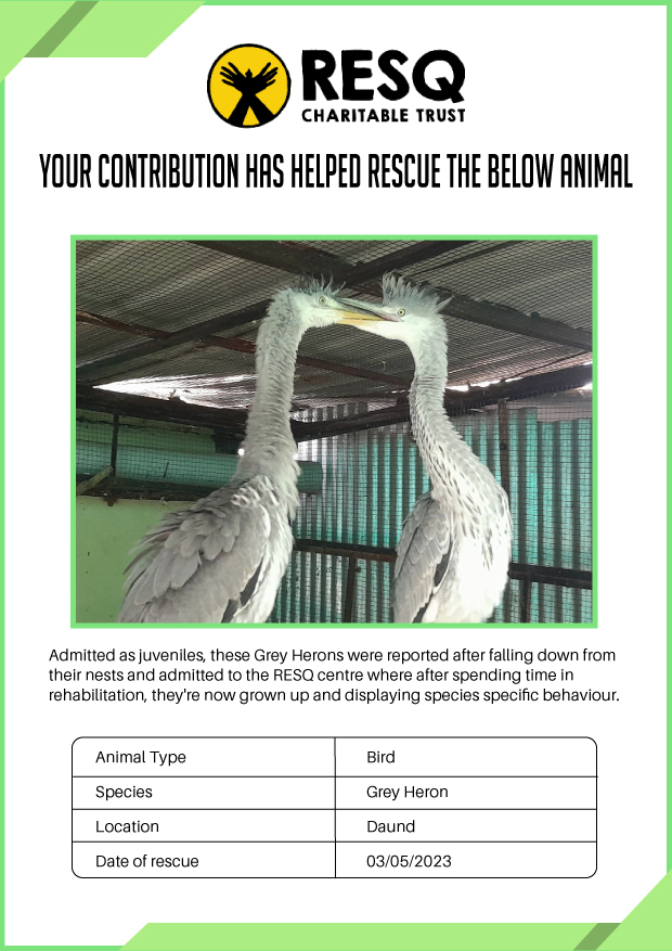 RESQ was founded in 2007 to provide emergency aid to animals in distress. Since then, the rescue and rehabilitation work of the organisation has provided aid to thousands of animals of over 200+ species, improved public health and safety outcomes, and actively worked on preventing human-animal conflict across multiple urban and rural ecosystems.