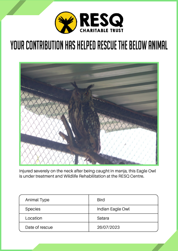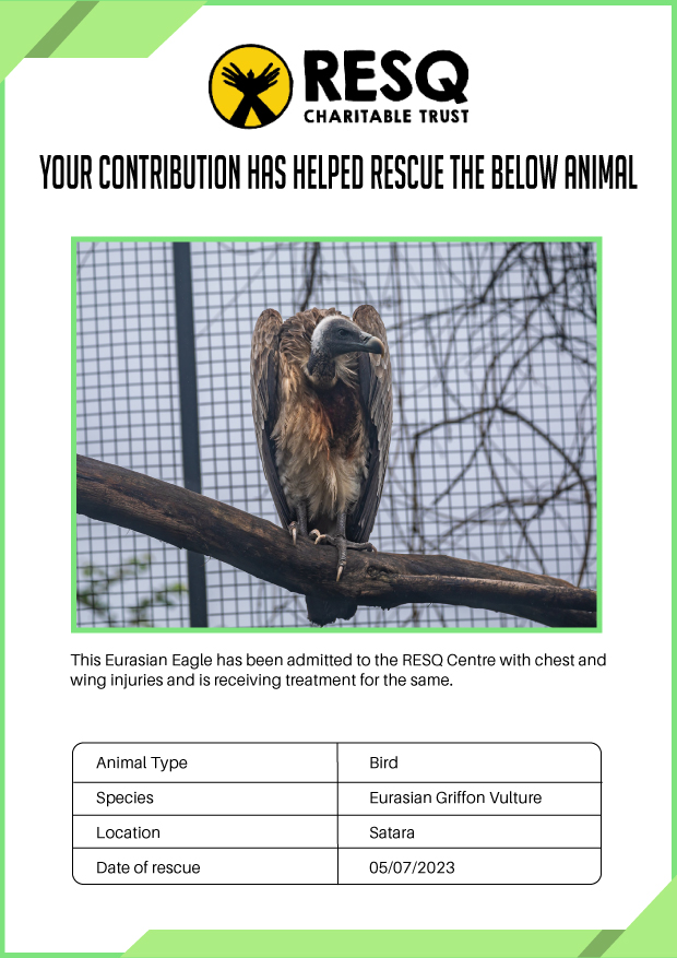Maharashtra is home to a diverse population of wild animals, many of whom are key species identified to be globally declining. The Pune-based NGO - RESQ provides emergency aid to animals in distress. Thousands of wild animals come to RESQ annually who are either injured, sick, orphaned, or victims of wildlife trafficking and illegal captivity.