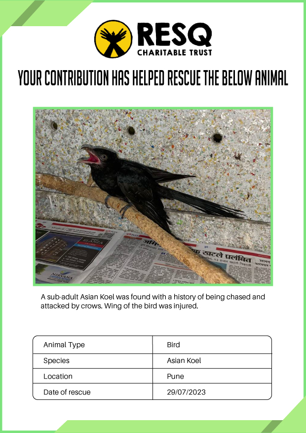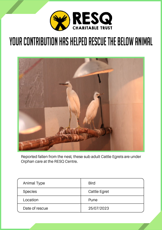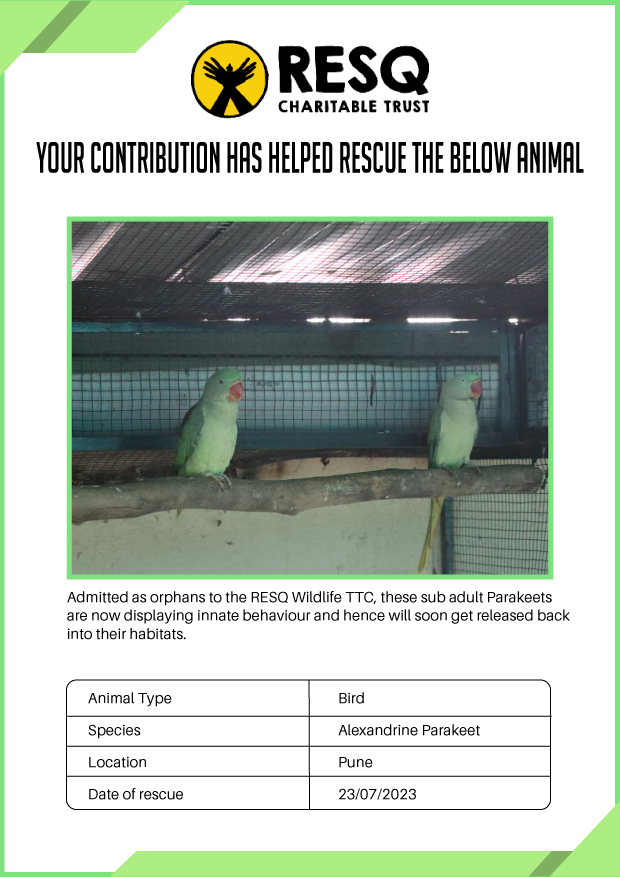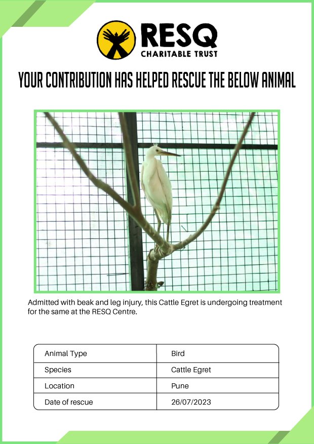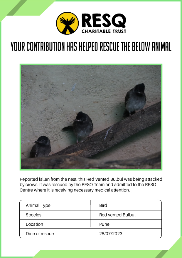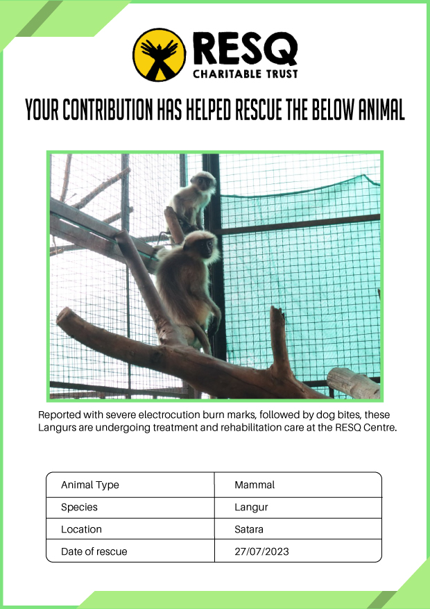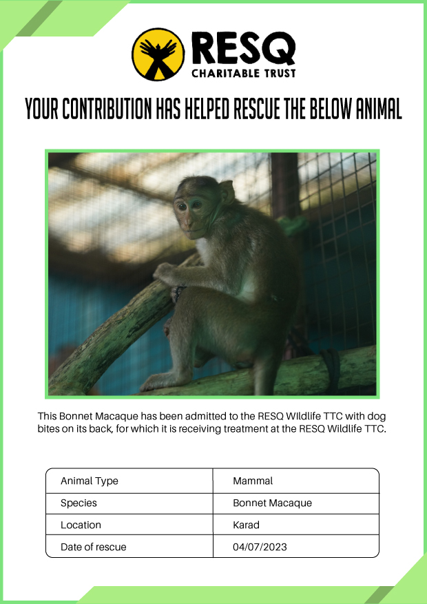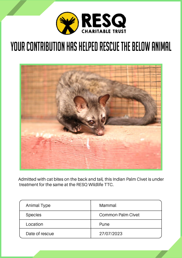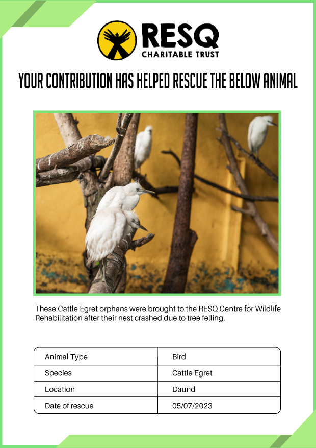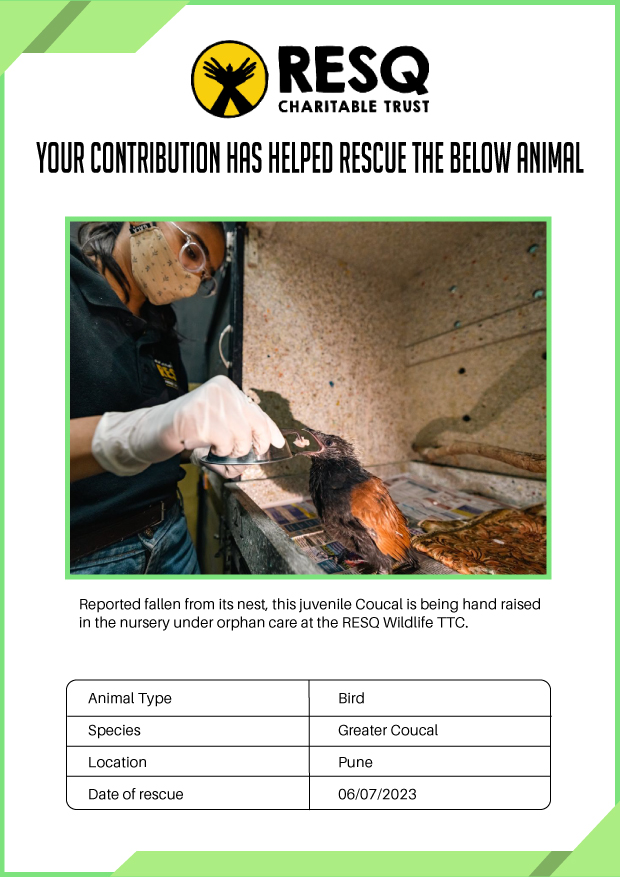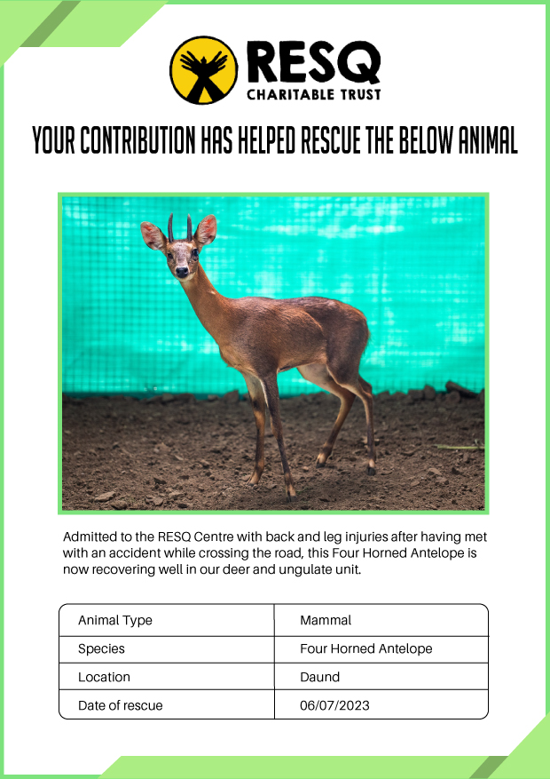 RESQ was founded in 2007 to provide emergency aid to animals in distress. Since then, the rescue and rehabilitation work of the organisation has provided aid to thousands of animals of over 200+ species, improved public health and safety outcomes, and actively worked on preventing human-animal conflict across multiple urban and rural ecosystems.