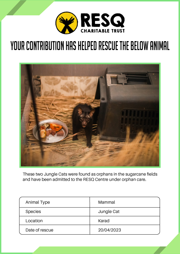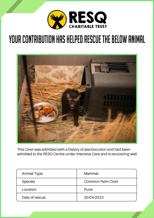 RESQ was founded in 2007 to provide emergency aid to animals in distress. Since then, the rescue and rehabilitation work of the organisation has provided aid to thousands of animals of over 200+ species, improved public health and safety outcomes, and actively worked on preventing human-animal conflict across multiple urban and rural ecosystems.