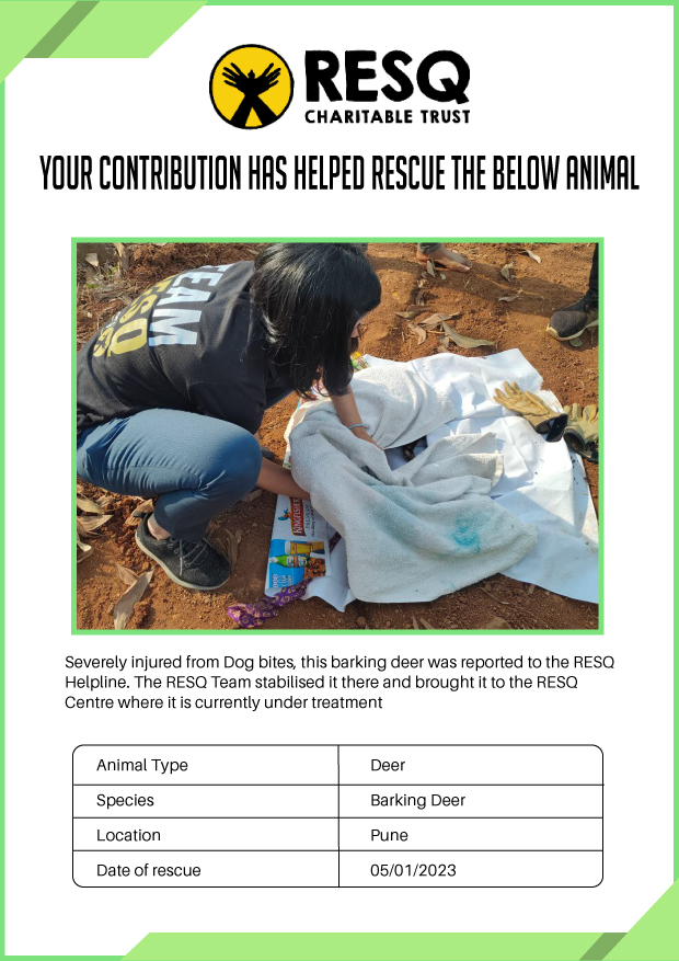 Maharashtra is home to a diverse population of wild animals, many of whom are key species identified to be globally declining. The Pune-based NGO - RESQ provides emergency aid to animals in distress. Thousands of wild animals come to RESQ annually who are either injured, sick, orphaned, or victims of wildlife trafficking and illegal captivity.