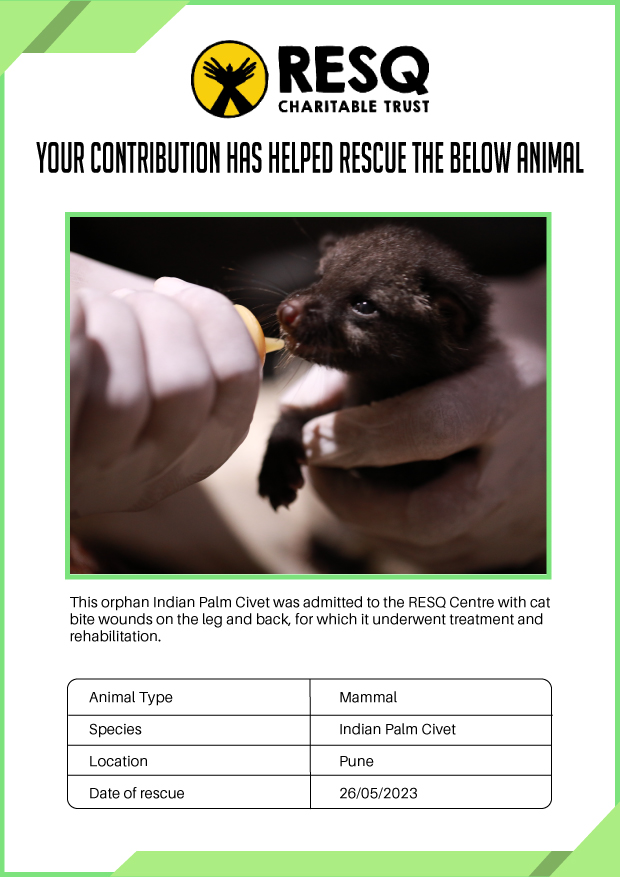 RESQ was founded in 2007 to provide emergency aid to animals in distress. Since then, the rescue and rehabilitation work of the organisation has provided aid to thousands of animals of over 200+ species, improved public health and safety outcomes, and actively worked on preventing human-animal conflict across multiple urban and rural ecosystems.