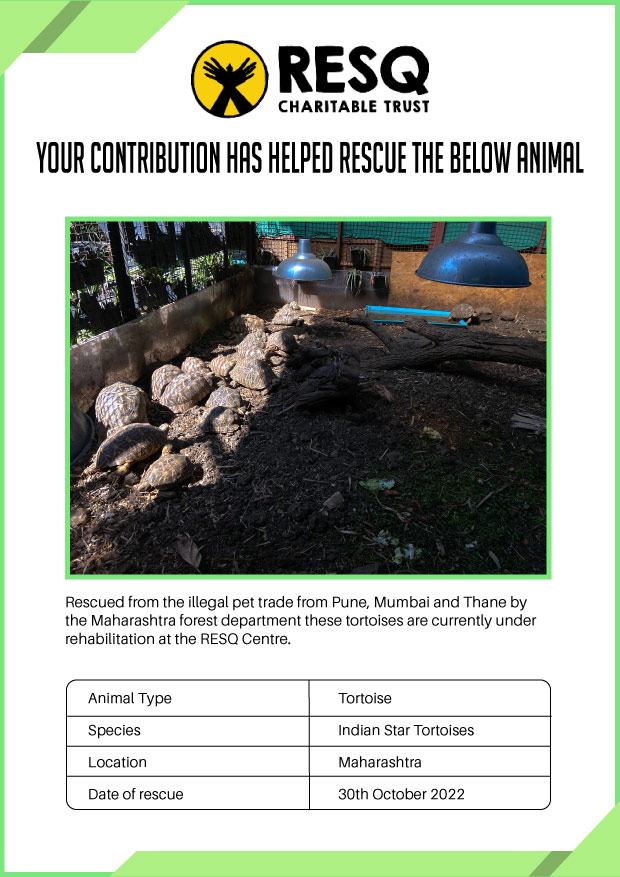 Maharashtra is home to a diverse population of wild animals, many of whom are key species identified to be globally declining. The Pune-based NGO - RESQ provides emergency aid to animals in distress. Thousands of wild animals come to RESQ annually who are either injured, sick, orphaned, or victims of wildlife trafficking and illegal captivity.