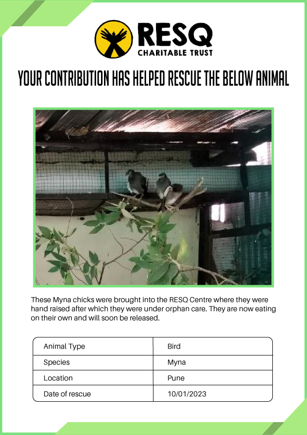 RESQ was founded in 2007 to provide emergency aid to animals in distress. Since then, the rescue and rehabilitation work of the organisation has provided aid to thousands of animals of over 200+ species, improved public health and safety outcomes, and actively worked on preventing human-animal conflict across multiple urban and rural ecosystems.