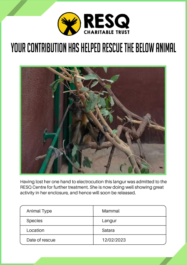 RESQ was founded in 2007 to provide emergency aid to animals in distress. Since then, the rescue and rehabilitation work of the organisation has provided aid to thousands of animals of over 200+ species, improved public health and safety outcomes, and actively worked on preventing human-animal conflict across multiple urban and rural ecosystems.