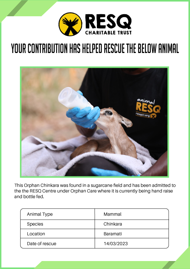 RESQ was founded in 2007 to provide emergency aid to animals in distress. Since then, the rescue and rehabilitation work of the organisation has provided aid to thousands of animals of over 200+ species, improved public health and safety outcomes, and actively worked on preventing human-animal conflict across multiple urban and rural ecosystems.