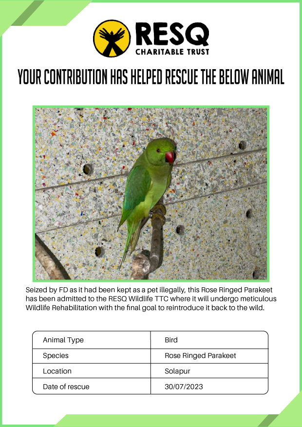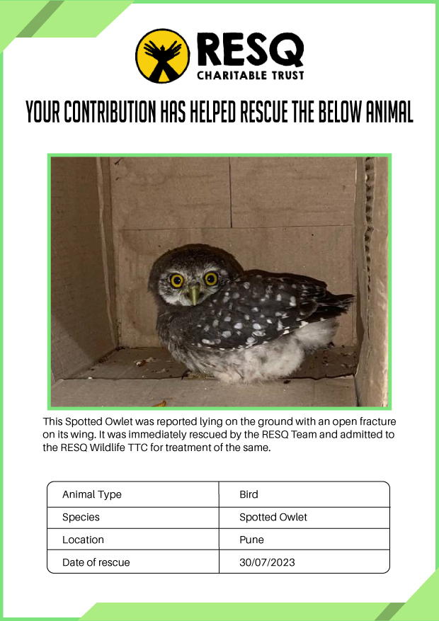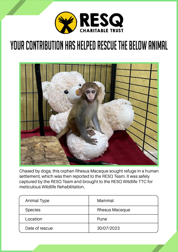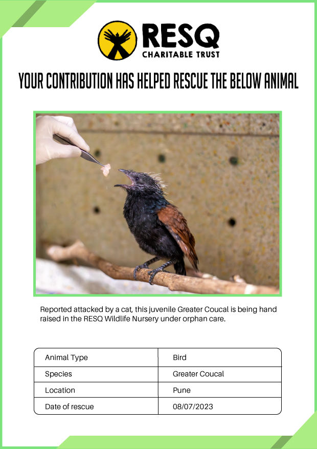 RESQ was founded in 2007 to provide emergency aid to animals in distress. Since then, the rescue and rehabilitation work of the organisation has provided aid to thousands of animals of over 200+ species, improved public health and safety outcomes, and actively worked on preventing human-animal conflict across multiple urban and rural ecosystems.