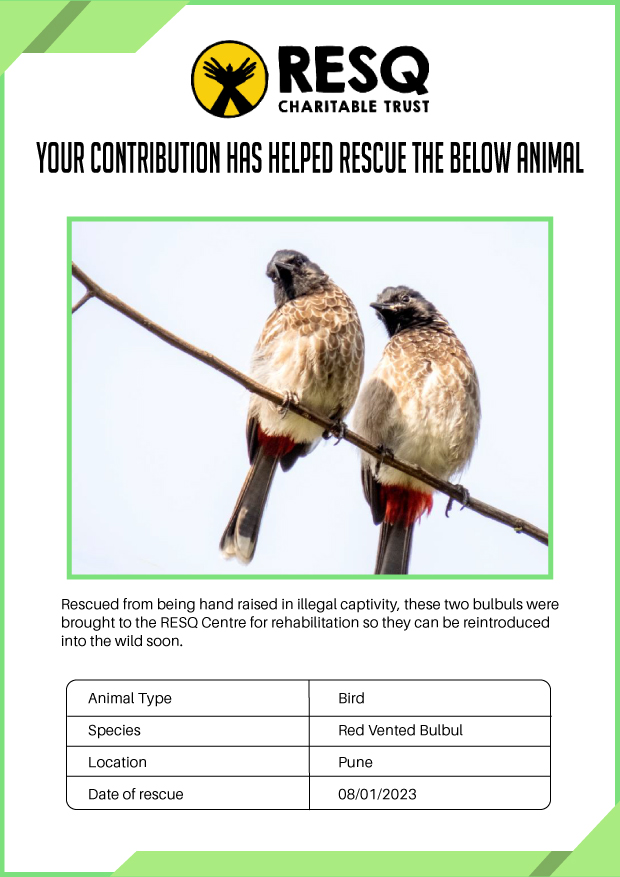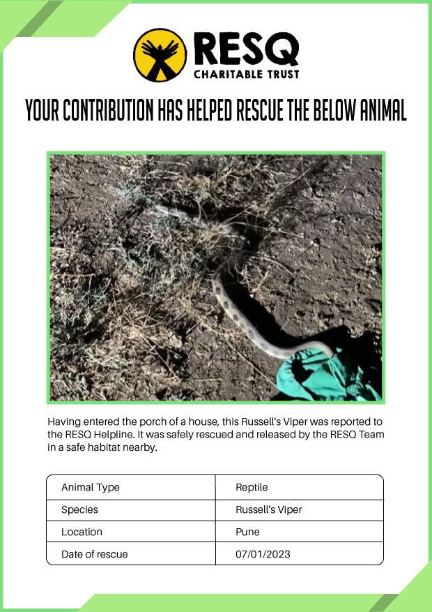 RESQ was founded in 2007 to provide emergency aid to animals in distress. Since then, the rescue and rehabilitation work of the organisation has provided aid to thousands of animals of over 200+ species, improved public health and safety outcomes, and actively worked on preventing human-animal conflict across multiple urban and rural ecosystems.
