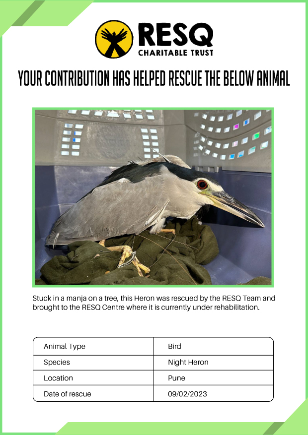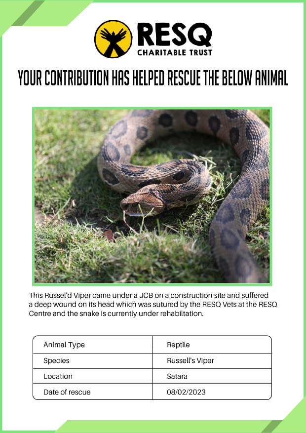 RESQ was founded in 2007 to provide emergency aid to animals in distress. Since then, the rescue and rehabilitation work of the organisation has provided aid to thousands of animals of over 200+ species, improved public health and safety outcomes, and actively worked on preventing human-animal conflict across multiple urban and rural ecosystems.