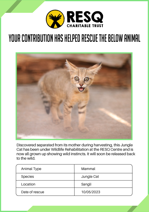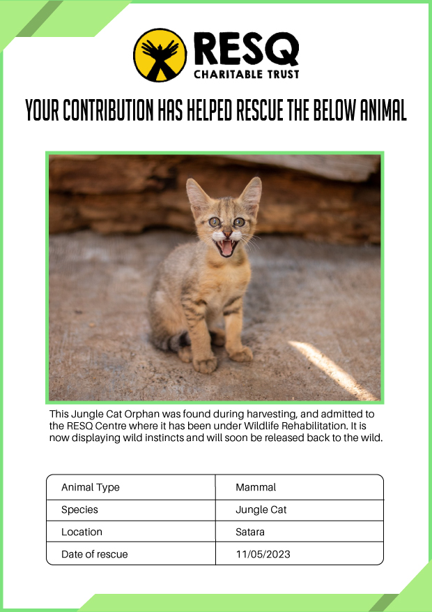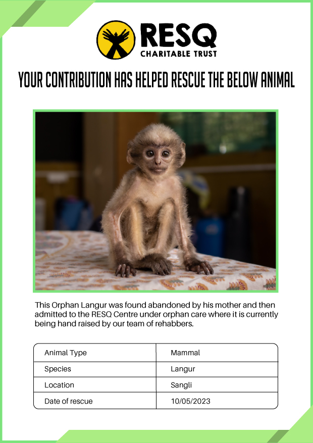 RESQ was founded in 2007 to provide emergency aid to animals in distress. Since then, the rescue and rehabilitation work of the organisation has provided aid to thousands of animals of over 200+ species, improved public health and safety outcomes, and actively worked on preventing human-animal conflict across multiple urban and rural ecosystems.