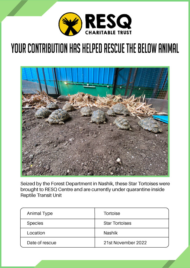 Maharashtra is home to a diverse population of wild animals, many of whom are key species identified to be globally declining. The Pune-based NGO - RESQ provides emergency aid to animals in distress. Thousands of wild animals come to RESQ annually who are either injured, sick, orphaned, or victims of wildlife trafficking and illegal captivity.