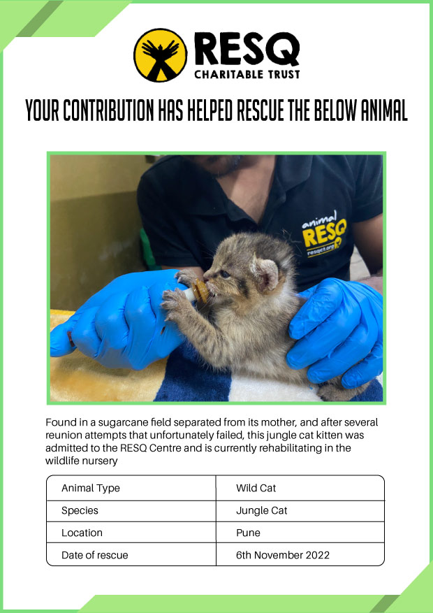 RESQ was founded in 2007 to provide emergency aid to animals in distress. Since then, the rescue and rehabilitation work of the organisation has provided aid to thousands of animals of over 200+ species, improved public health and safety outcomes, and actively worked on preventing human-animal conflict across multiple urban and rural ecosystems.