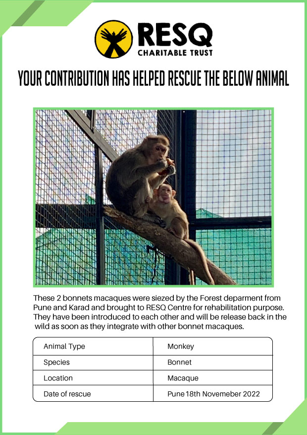 RESQ was founded in 2007 to provide emergency aid to animals in distress. Since then, the rescue and rehabilitation work of the organisation has provided aid to thousands of animals of over 200+ species, improved public health and safety outcomes, and actively worked on preventing human-animal conflict across multiple urban and rural ecosystems.
