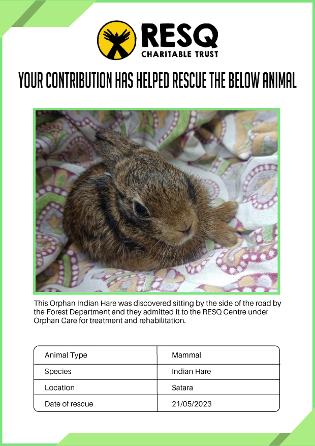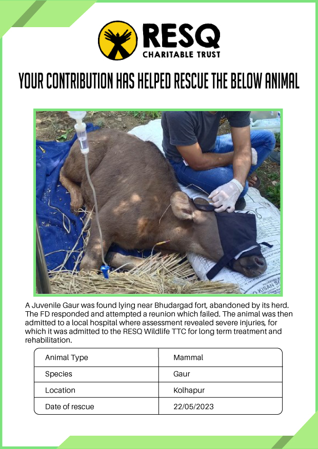 Maharashtra is home to a diverse population of wild animals, many of whom are key species identified to be globally declining. The Pune-based NGO - RESQ provides emergency aid to animals in distress. Thousands of wild animals come to RESQ annually who are either injured, sick, orphaned, or victims of wildlife trafficking and illegal captivity.