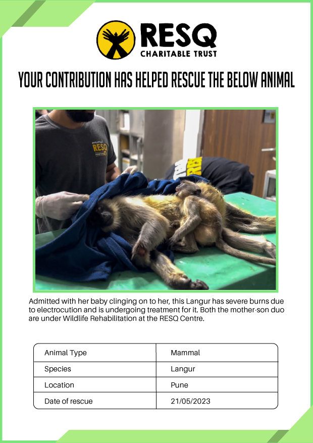 RESQ was founded in 2007 to provide emergency aid to animals in distress. Since then, the rescue and rehabilitation work of the organisation has provided aid to thousands of animals of over 200+ species, improved public health and safety outcomes, and actively worked on preventing human-animal conflict across multiple urban and rural ecosystems.