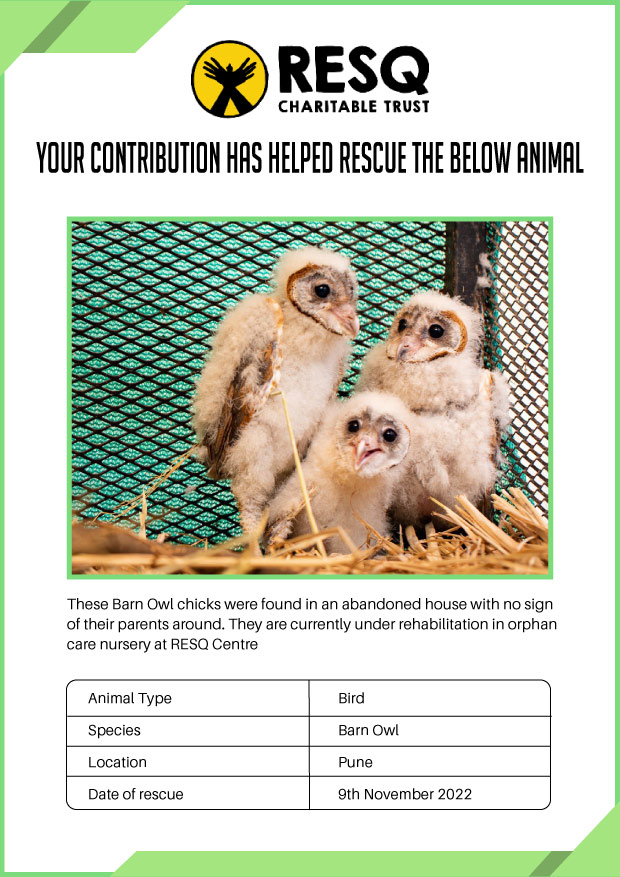 RESQ was founded in 2007 to provide emergency aid to animals in distress. Since then, the rescue and rehabilitation work of the organisation has provided aid to thousands of animals of over 200+ species, improved public health and safety outcomes, and actively worked on preventing human-animal conflict across multiple urban and rural ecosystems.