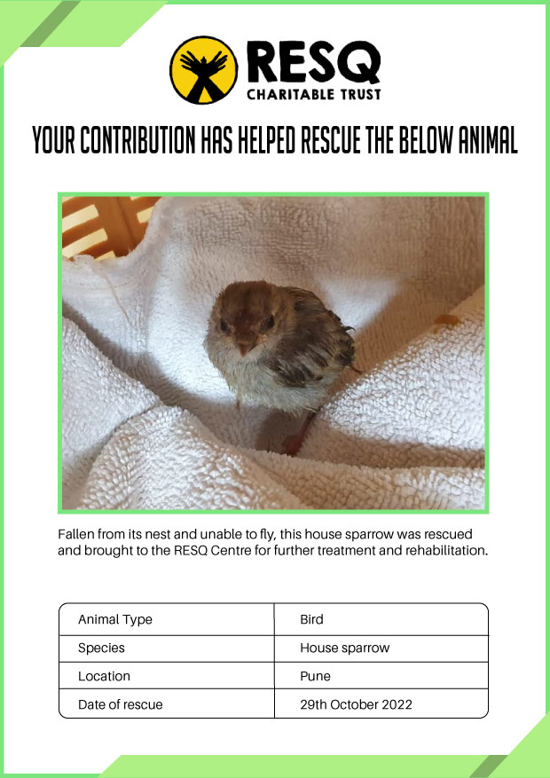 RESQ was founded in 2007 to provide emergency aid to animals in distress. Since then, the rescue and rehabilitation work of the organisation has provided aid to thousands of animals of over 200+ species, improved public health and safety outcomes, and actively worked on preventing human-animal conflict across multiple urban and rural ecosystems.