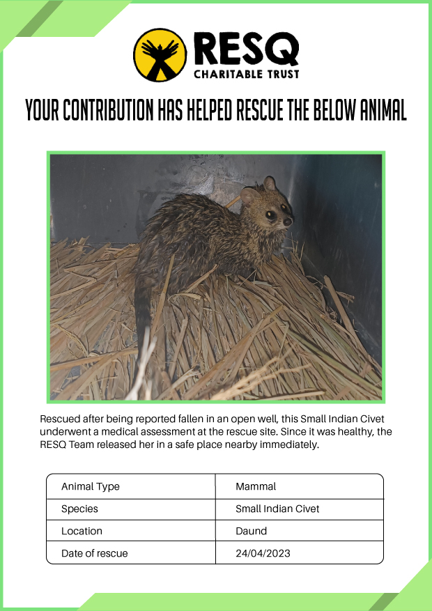 RESQ was founded in 2007 to provide emergency aid to animals in distress. Since then, the rescue and rehabilitation work of the organisation has provided aid to thousands of animals of over 200+ species, improved public health and safety outcomes, and actively worked on preventing human-animal conflict across multiple urban and rural ecosystems.