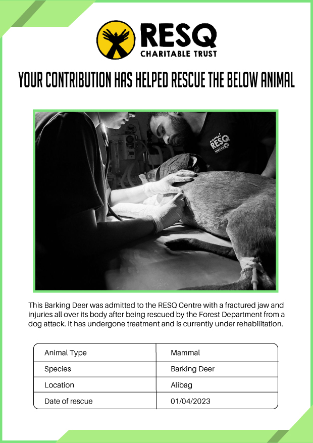 I was delighted to learn that the NGO RESQ works tirelessly to help animals in need. The NGO is authorised by the Government of Maharashtra to conduct state-wide wildlife rescue in collaboration with the Maharashtra Forest Department.