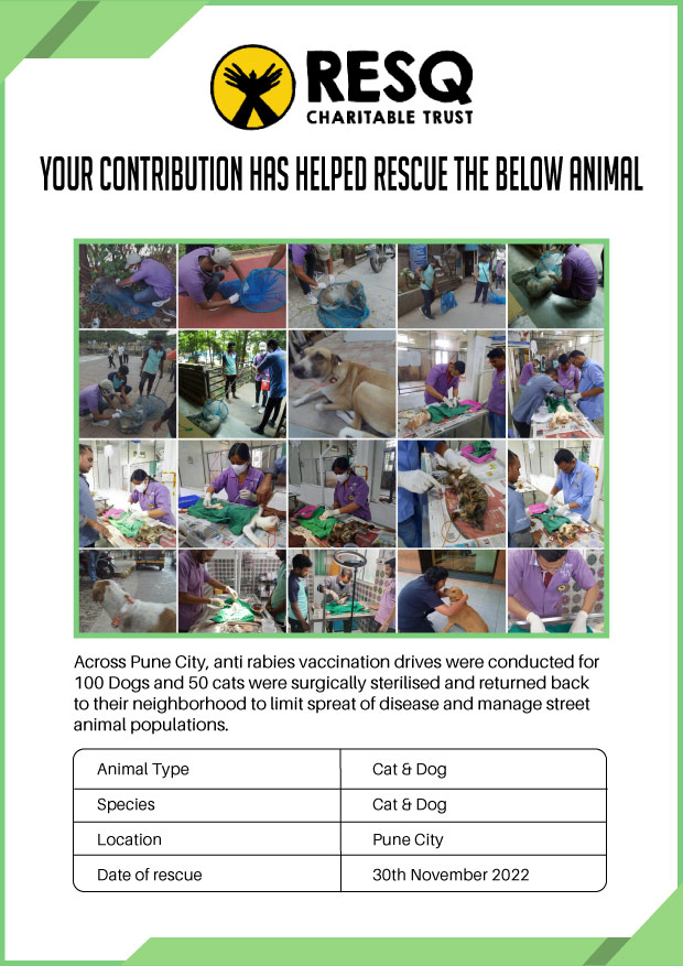 RESQ was founded in 2007 to provide emergency aid to animals in distress. Since then, the rescue and rehabilitation work of the organisation has provided aid to thousands of animals of over 200+ species, improved public health and safety outcomes, and actively worked on preventing human-animal conflict across multiple urban and rural ecosystems.