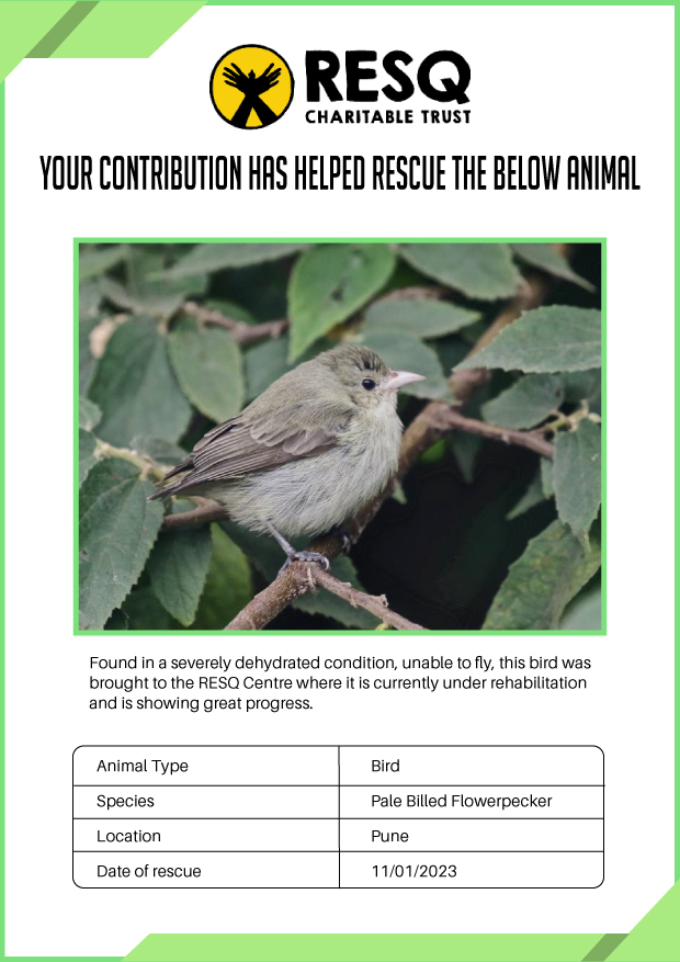 Maharashtra is home to a diverse population of wild animals, many of whom are key species identified to be globally declining. The Pune-based NGO - RESQ provides emergency aid to animals in distress. Thousands of wild animals come to RESQ annually who are either injured, sick, orphaned, or victims of wildlife trafficking and illegal captivity.