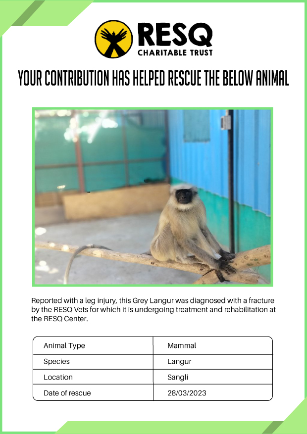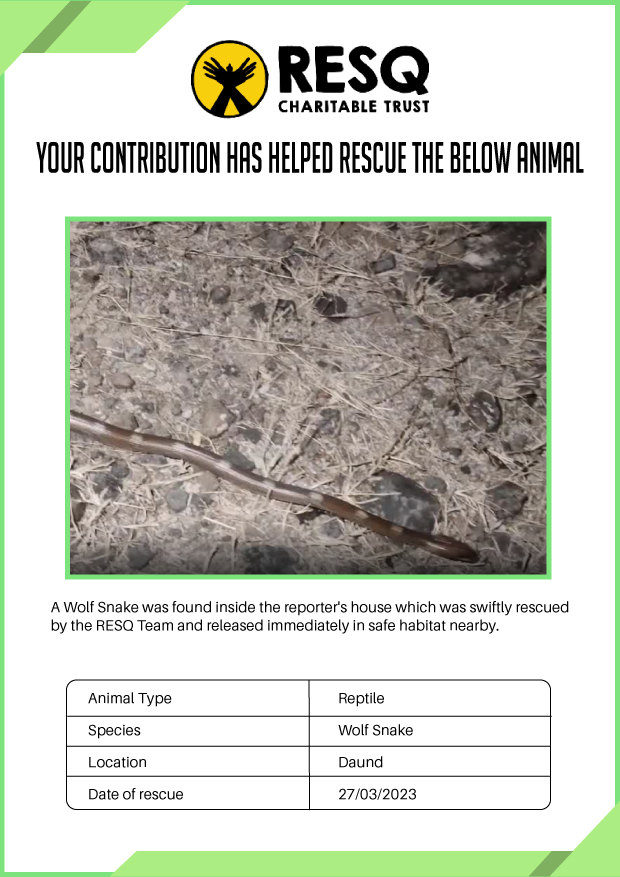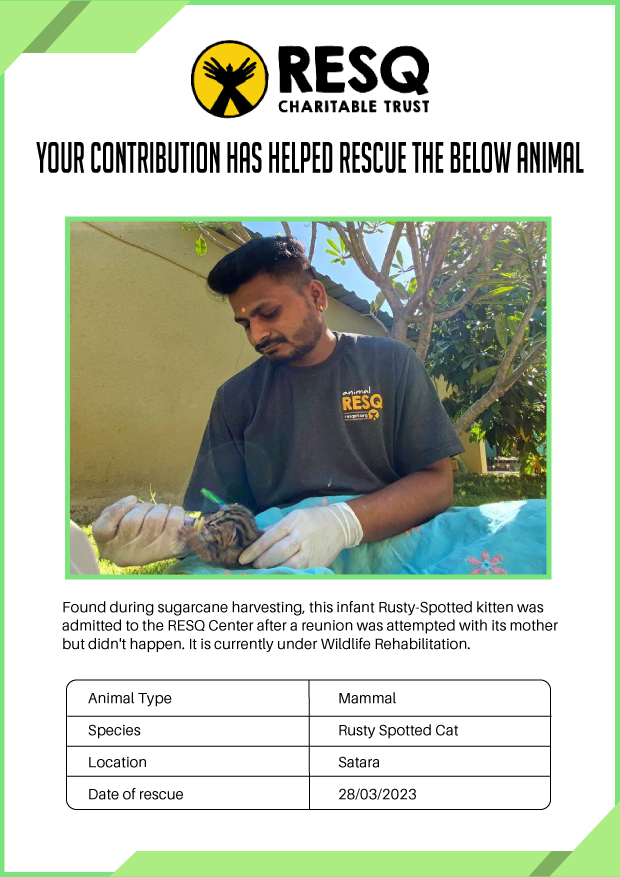 RESQ was founded in 2007 to provide emergency aid to animals in distress. Since then, the rescue and rehabilitation work of the organisation has provided aid to thousands of animals of over 200+ species, improved public health and safety outcomes, and actively worked on preventing human-animal conflict across multiple urban and rural ecosystems.