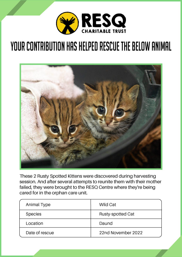 RESQ was founded in 2007 to provide emergency aid to animals in distress. Since then, the rescue and rehabilitation work of the organisation has provided aid to thousands of animals of over 200+ species, improved public health and safety outcomes, and actively worked on preventing human-animal conflict across multiple urban and rural ecosystems.