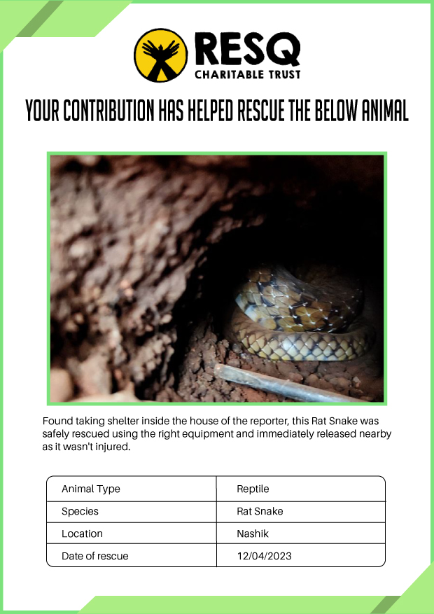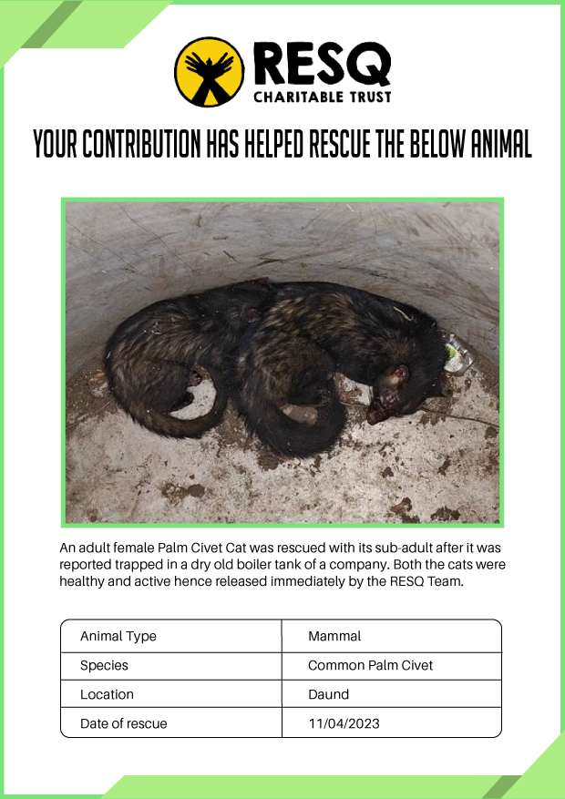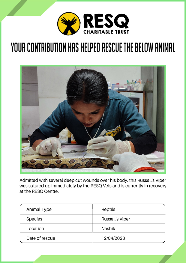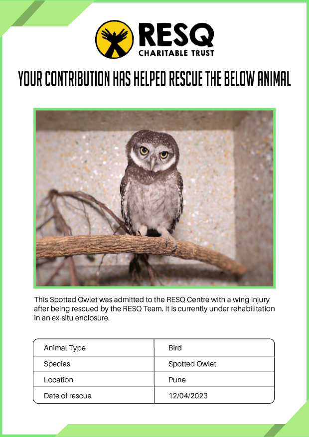 RESQ was founded in 2007 to provide emergency aid to animals in distress. Since then, the rescue and rehabilitation work of the organisation has provided aid to thousands of animals of over 200+ species, improved public health and safety outcomes, and actively worked on preventing human-animal conflict across multiple urban and rural ecosystems.