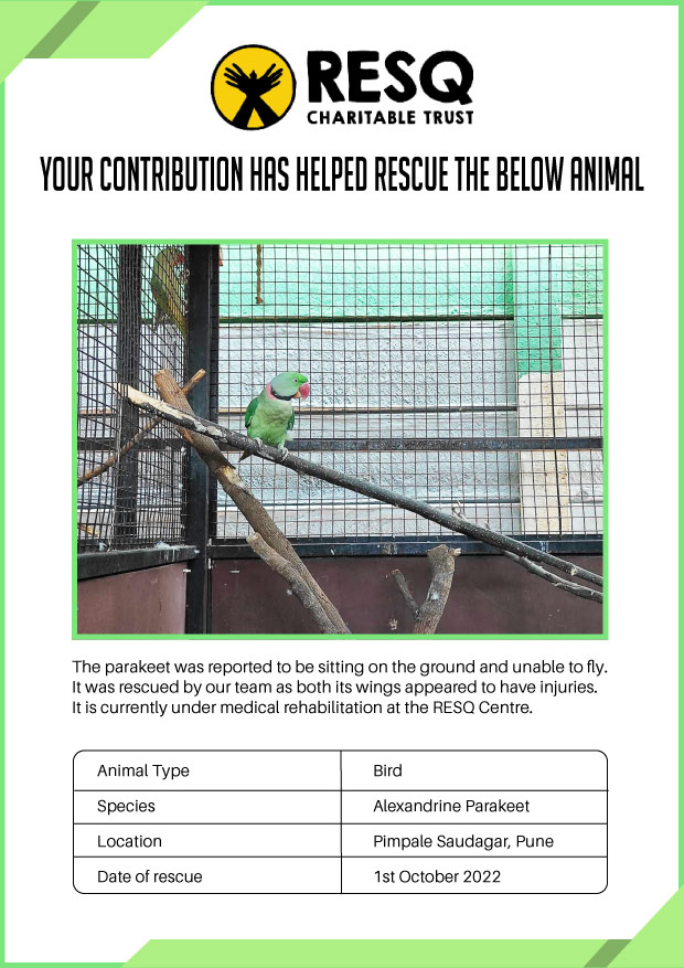 RESQ was founded in 2007 to provide emergency aid to animals in distress. Since then, the rescue and rehabilitation work of the organisation has provided aid to thousands of animals of over 200+ species, improved public health and safety outcomes, and actively worked on preventing human-animal conflict across multiple urban and rural ecosystems.