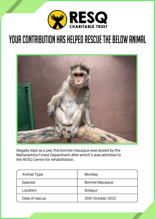 Maharashtra is home to a diverse population of wild animals, many of whom are key species identified to be globally declining. The Pune-based NGO - RESQ provides emergency aid to animals in distress. Thousands of wild animals come to RESQ annually who are either injured, sick, orphaned, or victims of wildlife trafficking and illegal captivity.