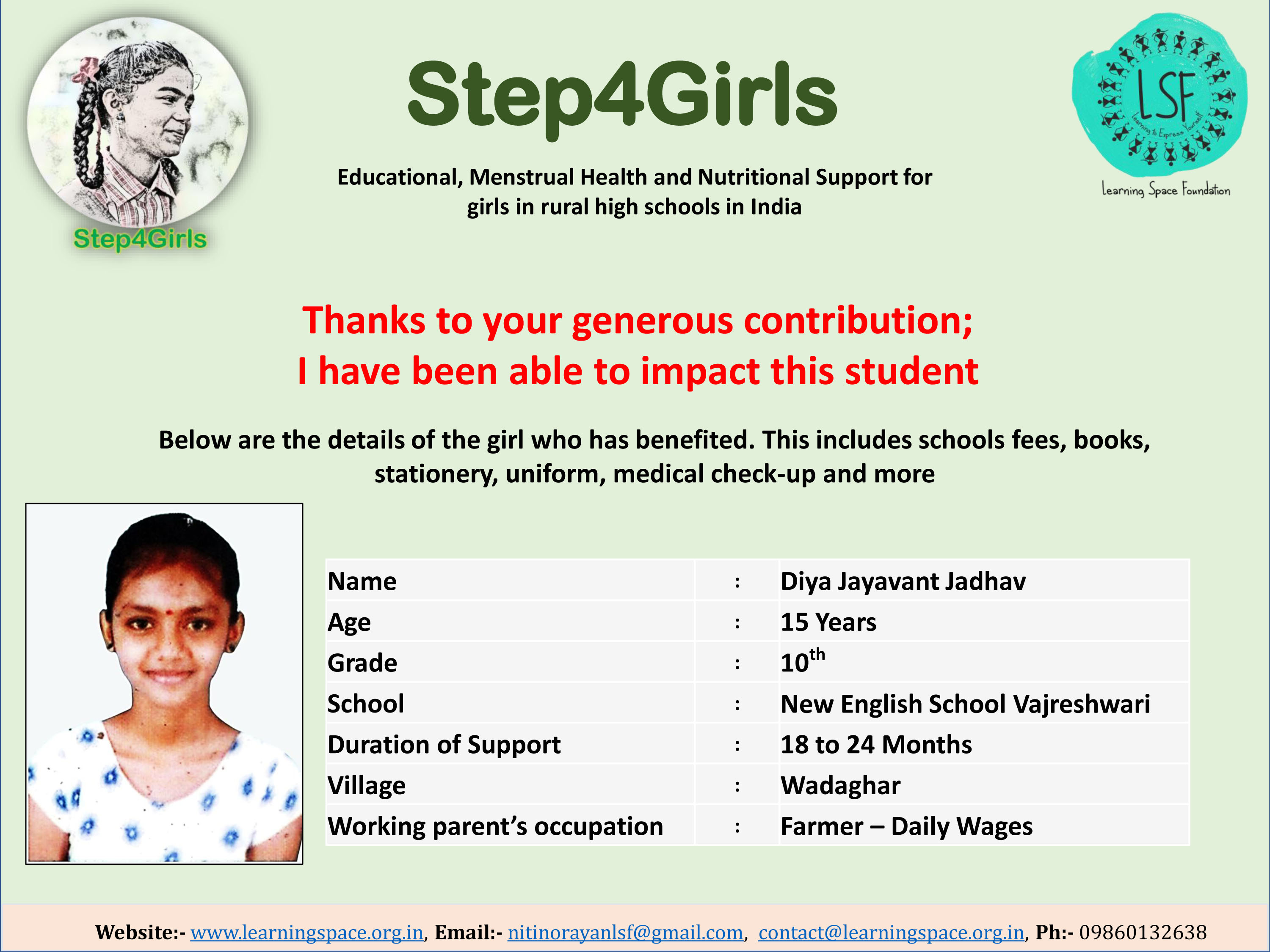 I was thrilled to learn about this initiative that provides education to underprivileged girls in Palghar and Thane districts. This will help them continue their education and achieve their dreams. Just INR 12000 will support their education for an entire year.