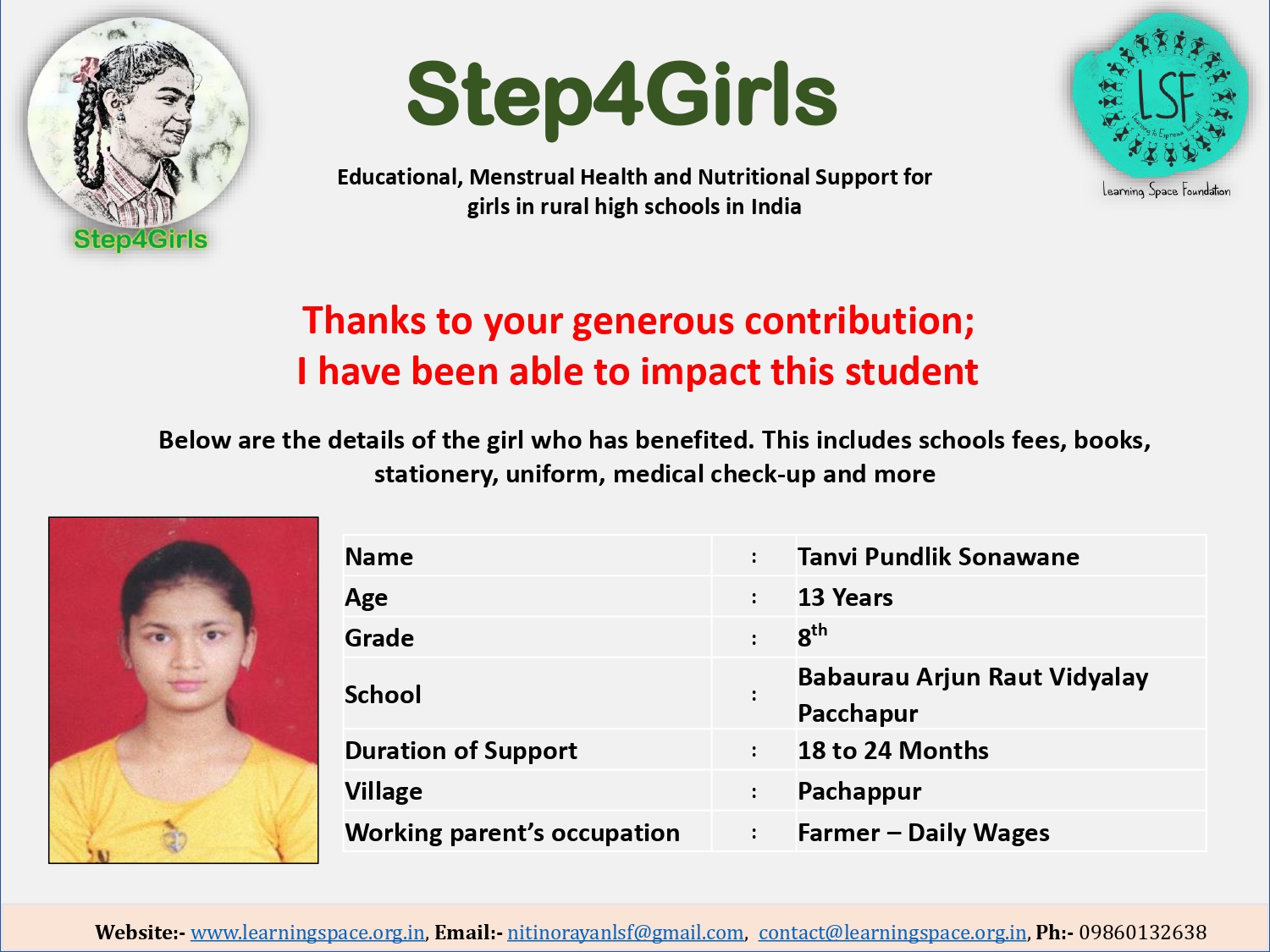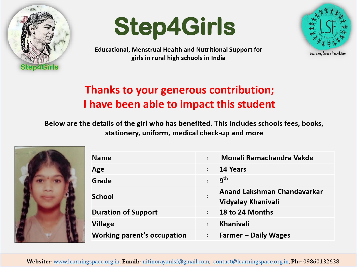 I was thrilled to learn about this initiative that provides education to underprivileged girls in Palghar and Thane districts. This will help them continue their education and achieve their dreams. Just INR 12000 will support their education for an entire year.