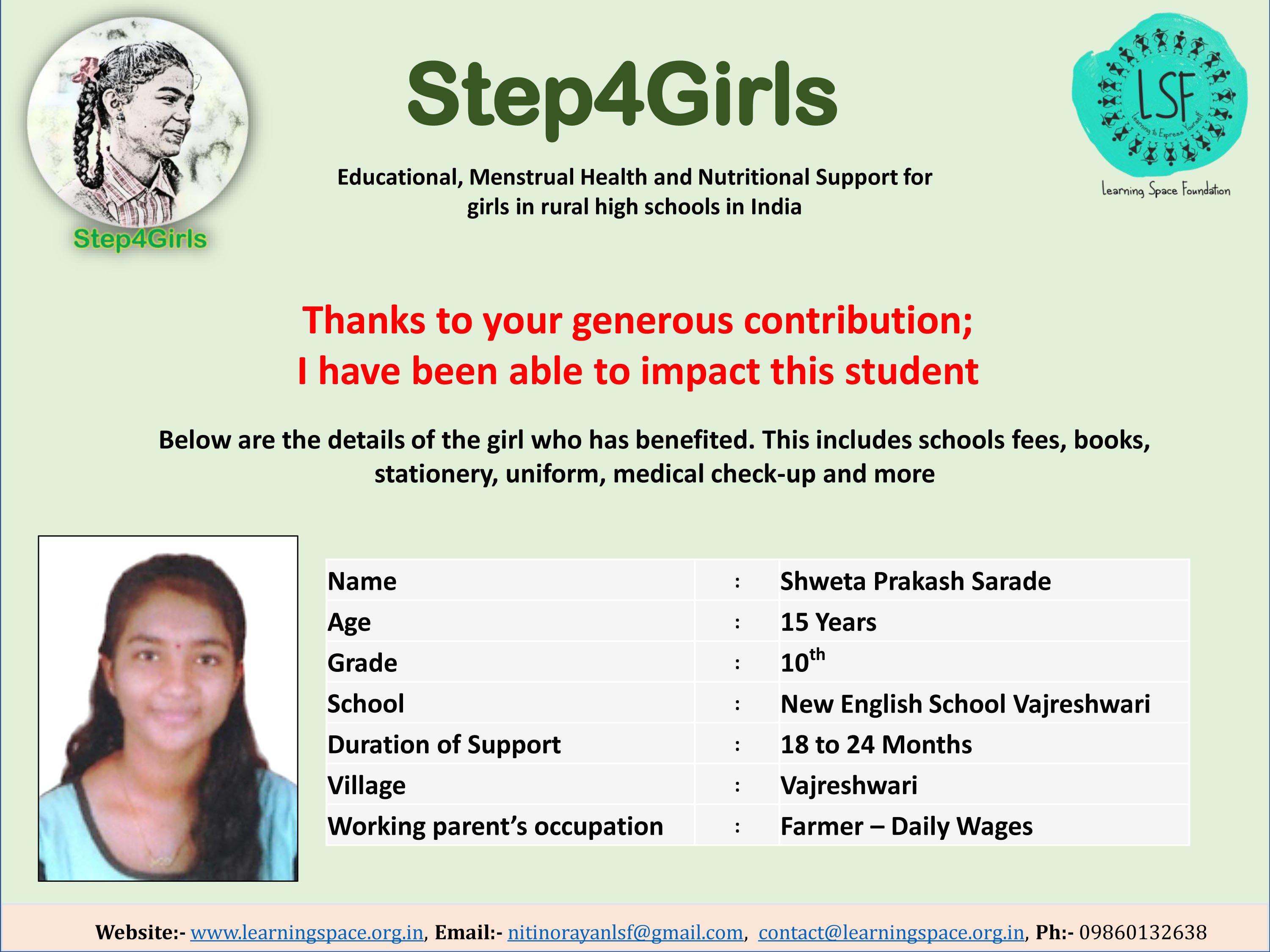 I was thrilled to learn about this initiative that provides education to underprivileged girls in Palghar and Thane districts. This will help them continue their education and achieve their dreams. Just INR 12000 will support their education for an entire year.