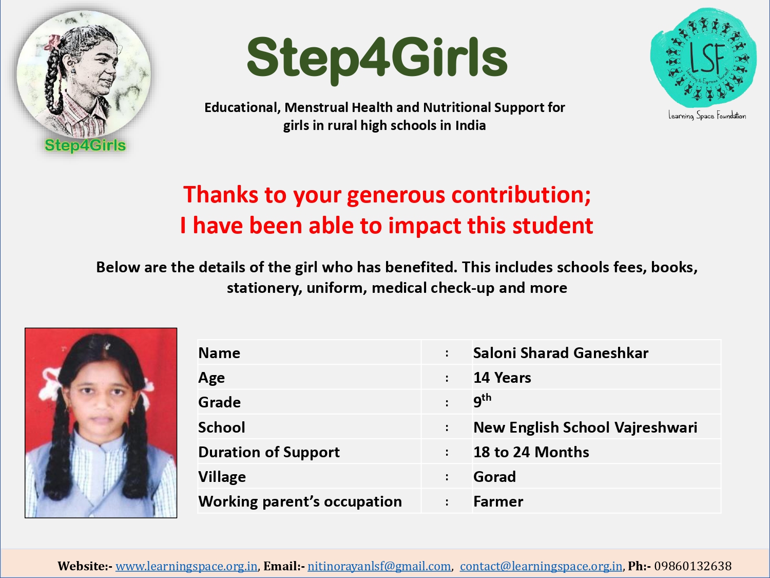 I was thrilled to learn about this initiative that provides education to underprivileged girls in Palghar and Thane districts. This will help them continue their education and achieve their dreams. Just INR 12000 will support their education for an entire year.