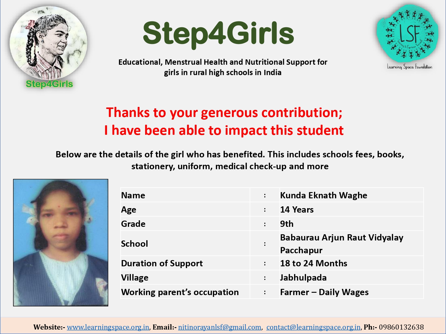 I was thrilled to learn about this initiative that provides education to underprivileged girls in Palghar and Thane districts. This will help them continue their education and achieve their dreams. Just INR 12000 will support their education for an entire year.