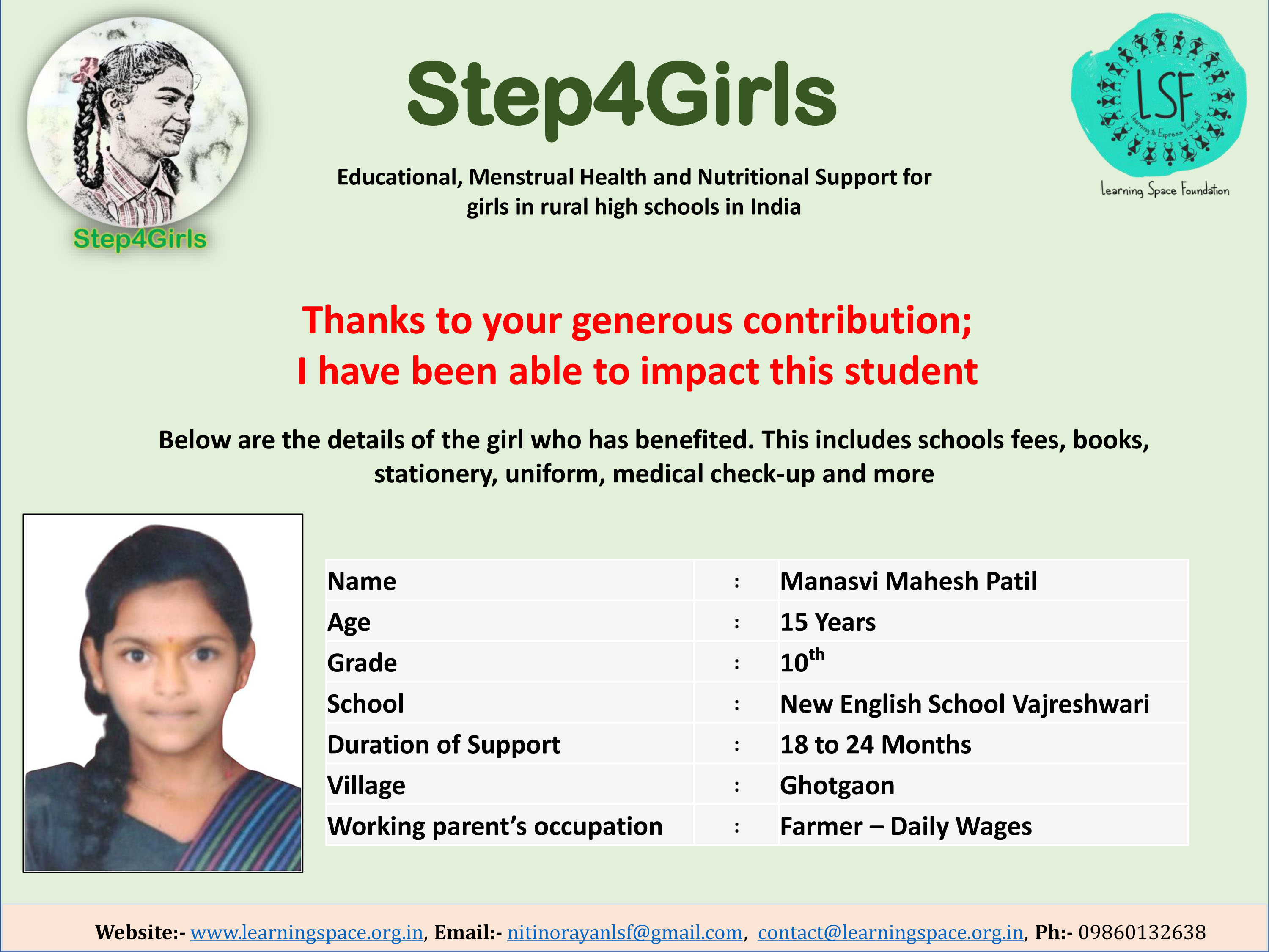 I was thrilled to learn about this initiative that provides education to underprivileged girls in Palghar and Thane districts. This will help them continue their education and achieve their dreams. Just INR 12000 will support their education for an entire year.