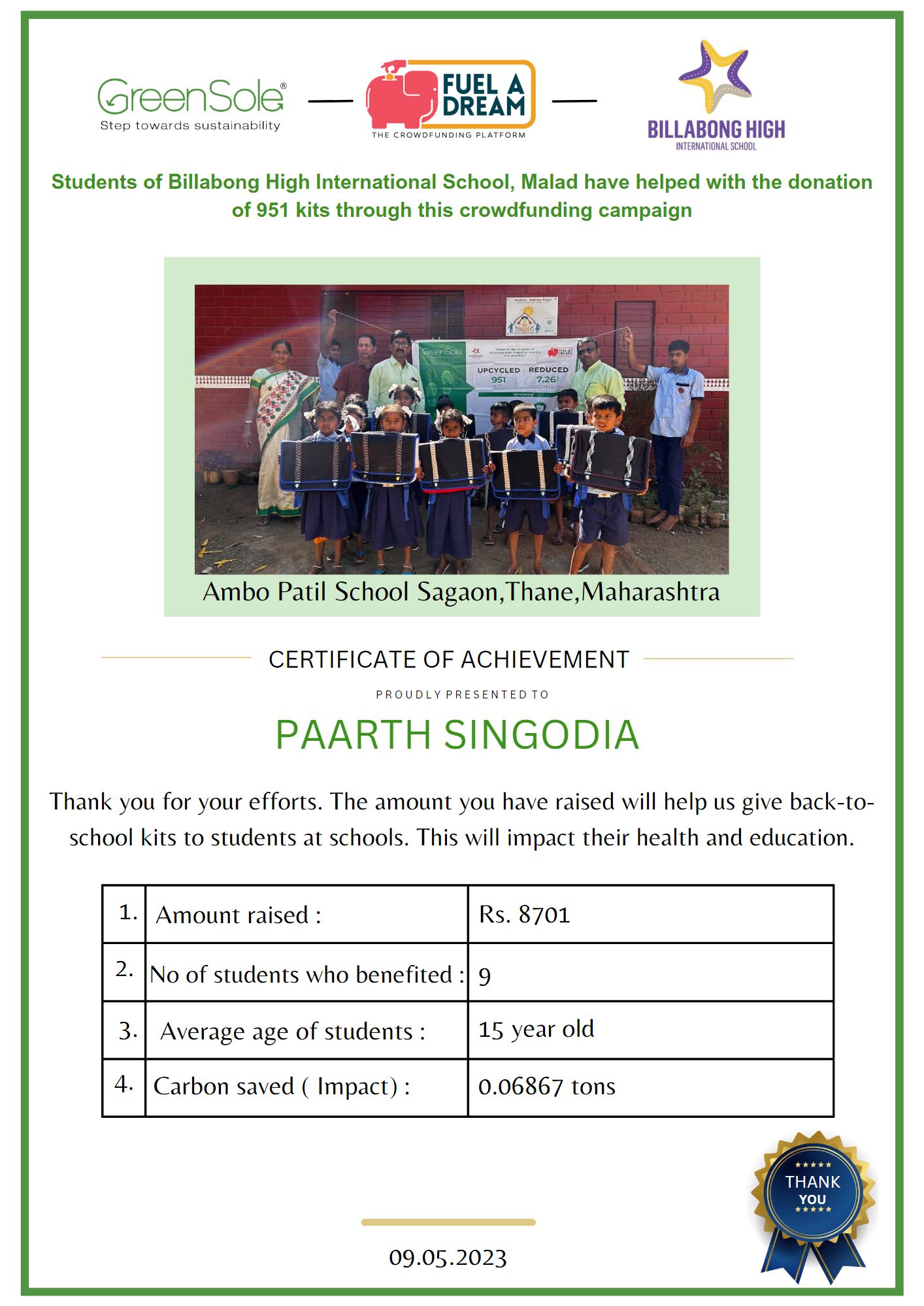 The distribution will take place in schools across Maharashtra. Greensole is located in Navi Mumbai, Maharashtra.
