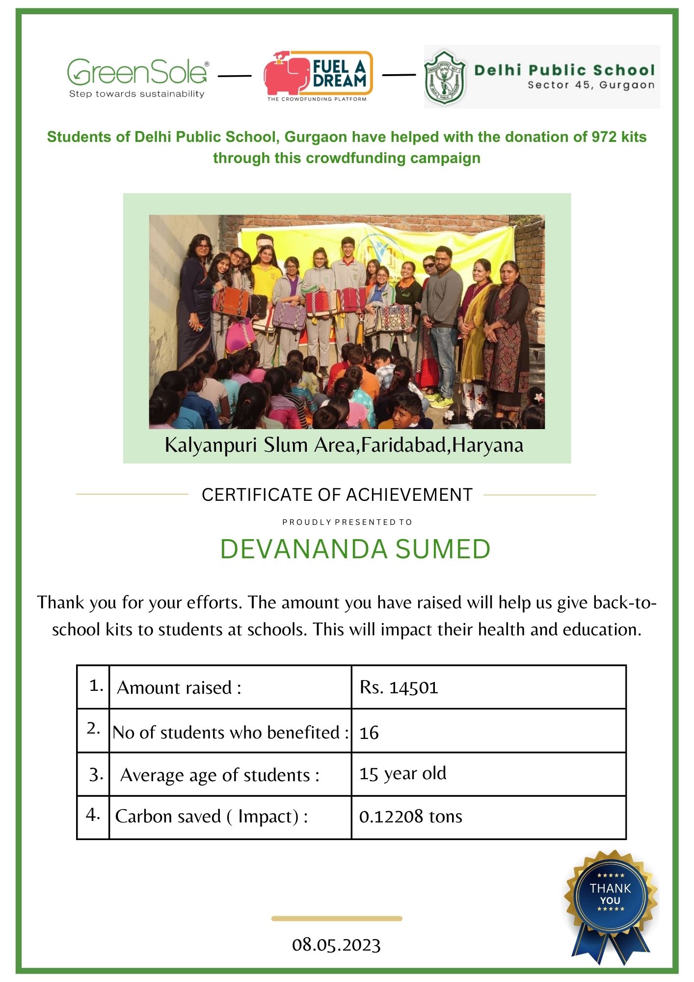 My name is DEVANANDA SUMED. I am 16 years old and in Grade 11 at DPS Gurgaon.