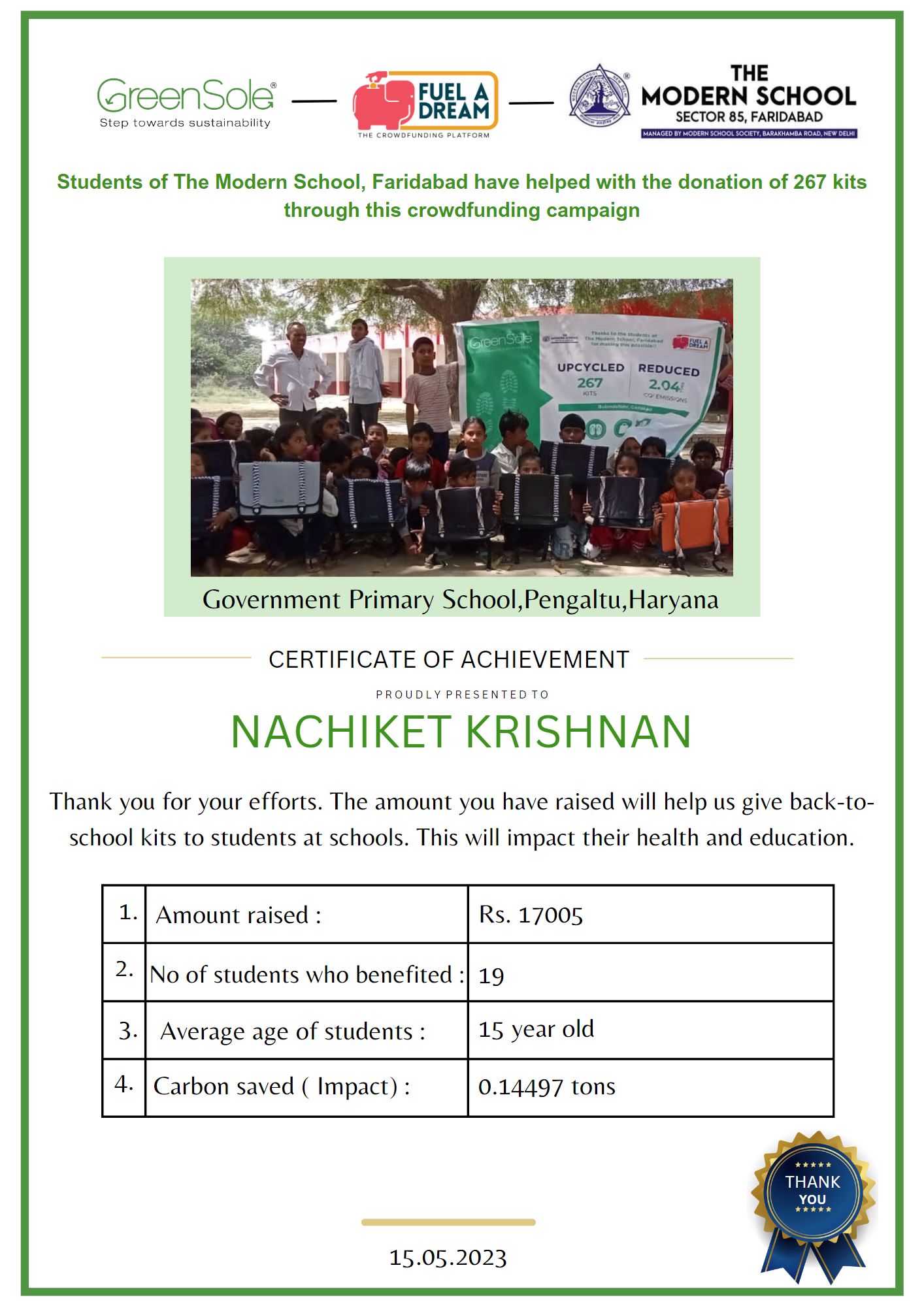 My name is NACHIKET KRISHNAN. I am 14 years old and in Grade 9 at the Modern School, Faridabad.