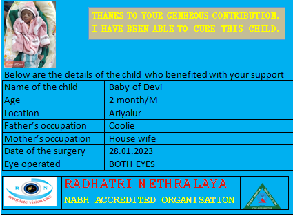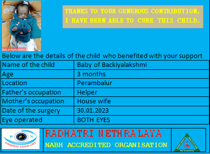 Project Balanethra is an initiative of the Radhatri Nethralaya Hospital in Chennai under the aegis of its public charitable trust Gurupriya Vision Research Foundation. This initiative aims to ensure that no baby loses his/her vision due to a lack of funds to do an ROP surgery.