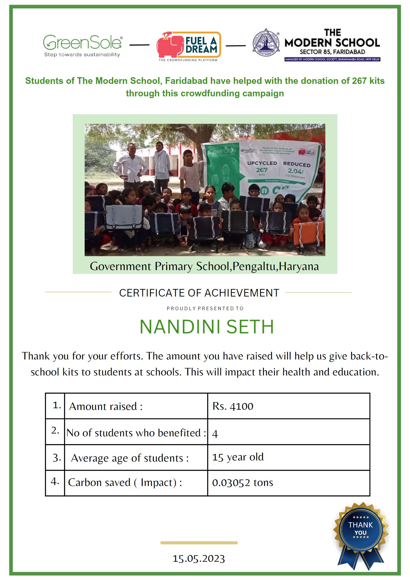 I have undertaken this campaign because I was surprised to learn that many students from low-income homes in Uttar Pradesh go to school and do not have basic school gear like footwear or a school bag and that they often sit on the hard ground as some schools do not have desks and chairs.