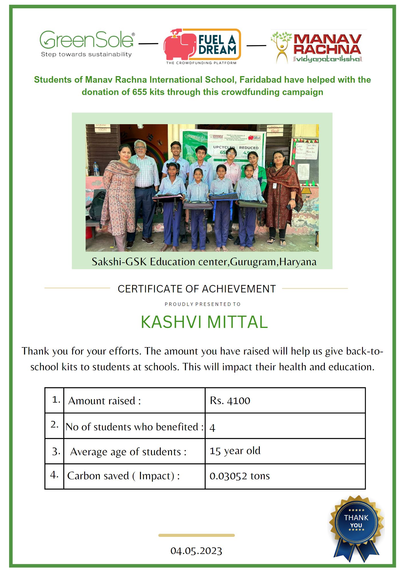 My name is KASHVI MITTAL. I am 16 years old and in Grade 11 at the Manav Rachna International School (MRIS), Faridabad.