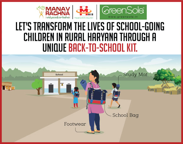 The back-to-school kit costs just INR 900 and gives students a pair of recycled footwear, a recycled study mat to sit comfortably at school or home and a recycled school bag for books. This is a very small amount to impact a student. Fund INR 3600 for example and transform the lives of 4 students.
