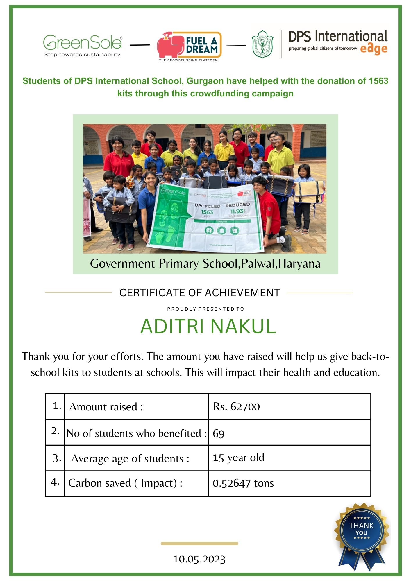 My name is Aditri Nakul. I am 14 years old and in Grade 9 at the DPS International School, Gurgaon.